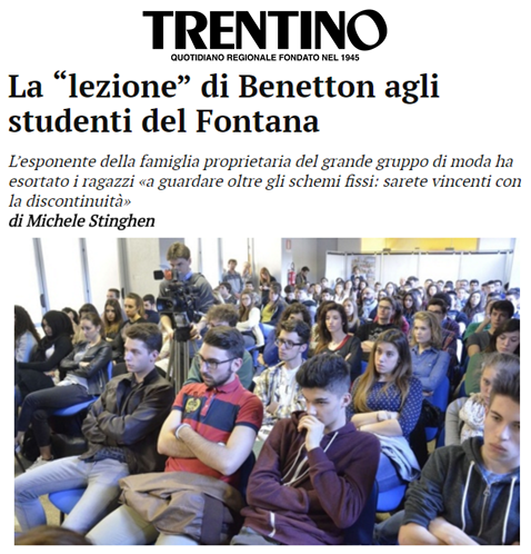 In the morning I was asked to take part to an event organised by Istituto Tecnico Fontana to celebrate its 160-year-long history. The invitation came from a student actually, Francesco Trentini, who wrote me a letter asking for advice. He wanted to know how to choose the right career path, the areas of expertise one should focus on, whether today it would be still possible to establish a company.
